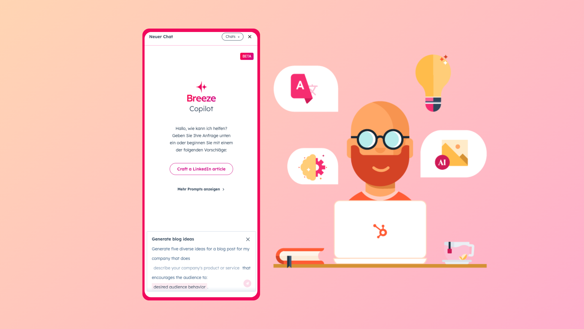 Egal ob du eine Zusammenfassung der E-Mail Korrespondenz mit einem Kunden brauchst, neue Content Ideen sammeln möchtest oder eine Aufgabe automatisieren willst – Breeze reagiert direkt und macht deine Arbeit dadurch noch effizienter. Gleichzeitig erhältst du wertvolle Einblicke, die dir helfen, bessere Entscheidungen zu treffen.