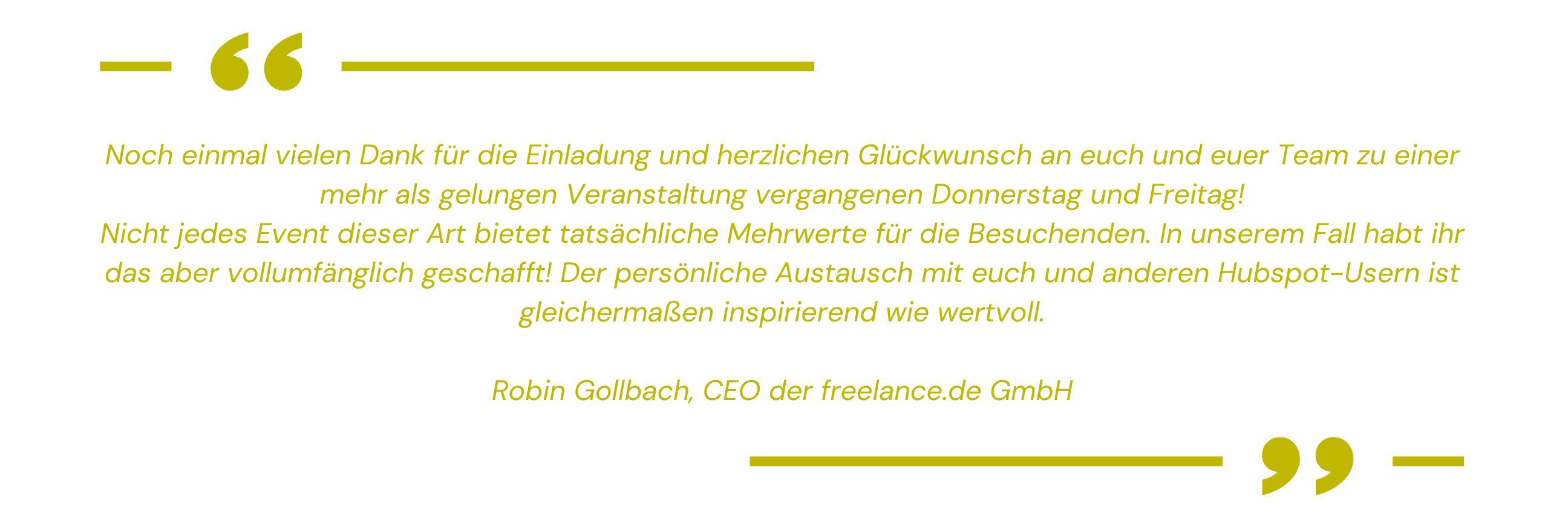 Für die Gäste sind diese Werte hautnah erlebbar. In zwangloser und sehr nahbarer Atmosphäre werden Erfahrungen ausgetauscht, Ideen geteilt und ehrliches Feedback ausgesprochen. Und gemeinsam taucht man bei Fachvorträgen oder Break out Sessions tief in den HubSpot-Kosmos ein.