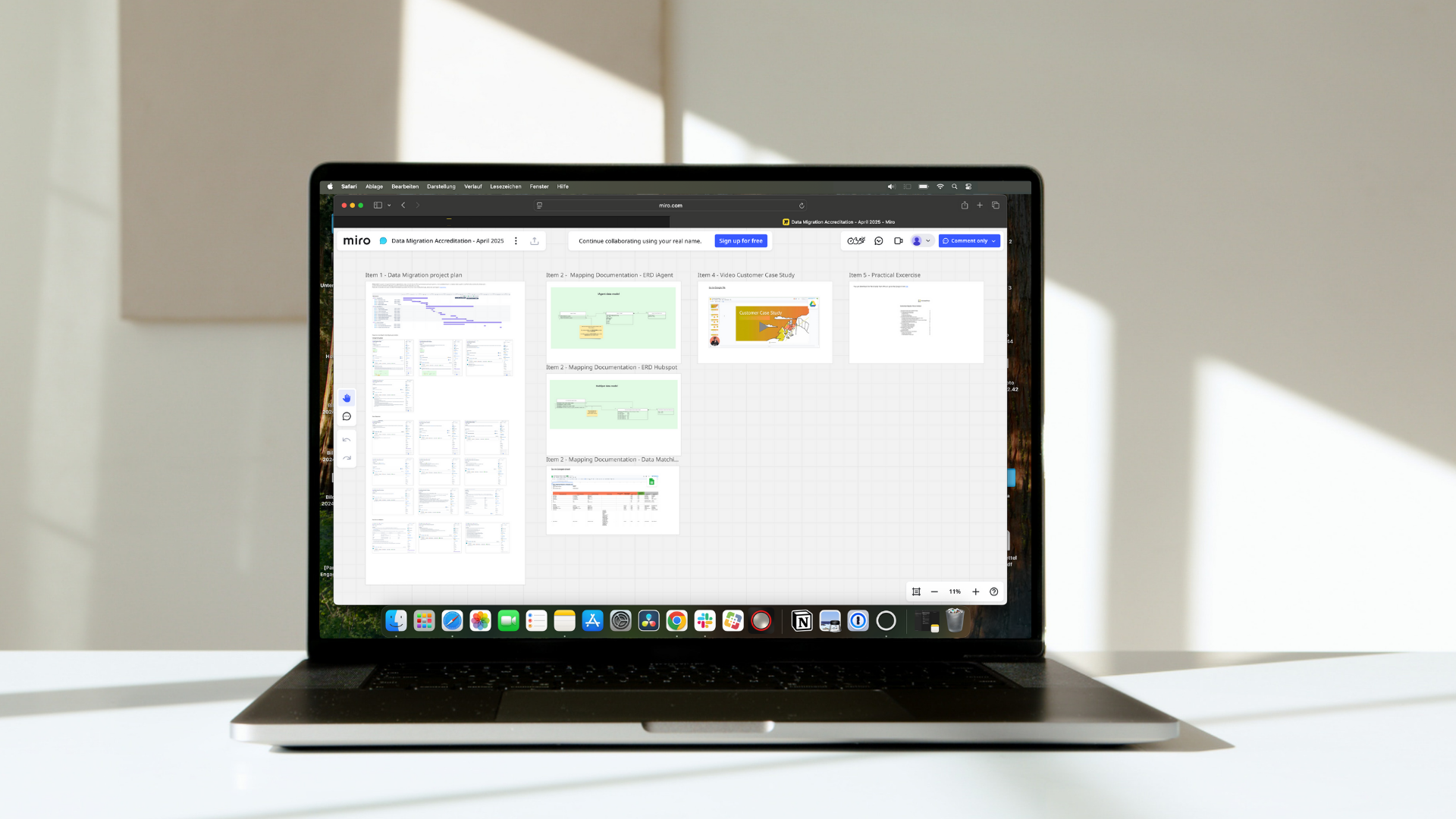Für uns bedeutete das: Wir mussten ein abgeschlossenes Kundenprojekt detailliert aufbereiten – auf Englisch, nachvollziehbar, mit allem, was dazugehört. Projektpläne, technische Datenmodelle, Mapping-Dateien, eine Video-Case-Study und die Lösung einer praktischen Fallstudie.